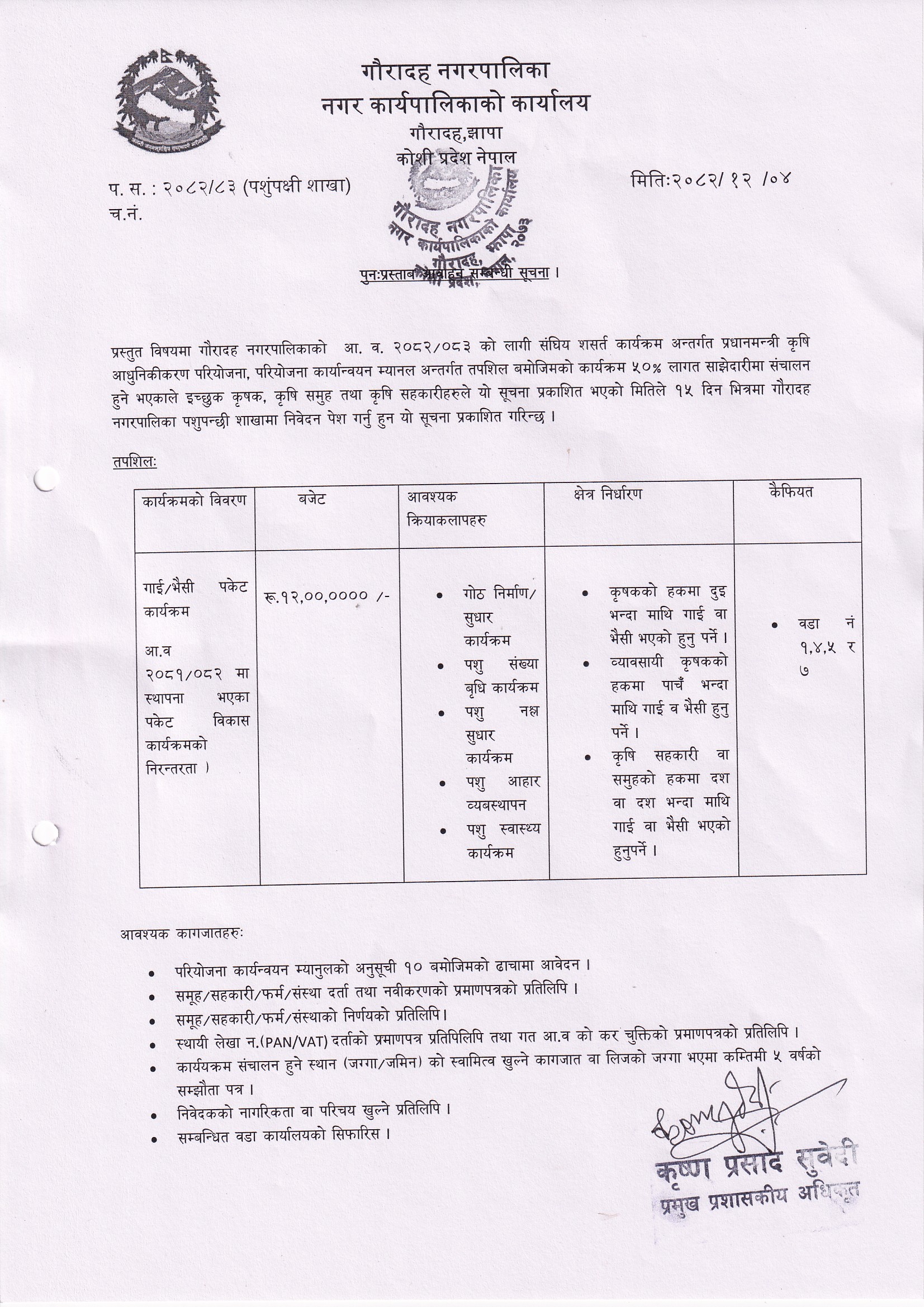 पुनः प्रस्ताव आह्वान सम्बन्धी सूचना ।