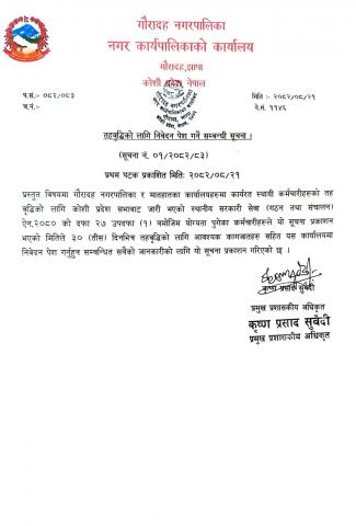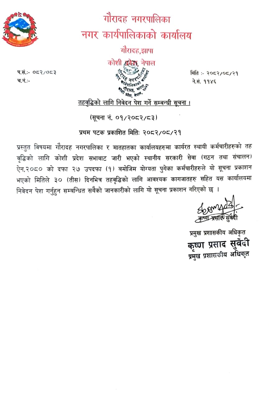 तहवृदिका लागि निवेदन पेश गर्ने सम्बन्धी सूचना