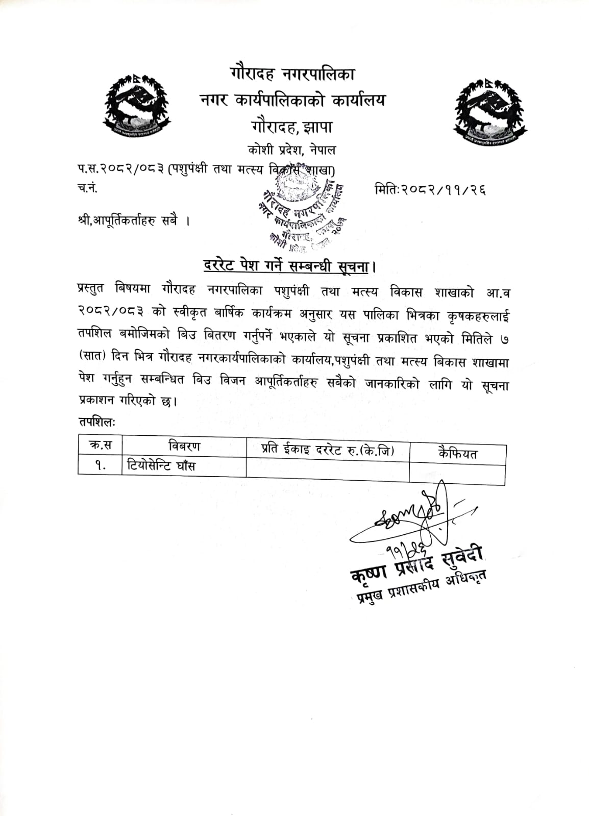 दररेट पेश गर्ने सम्बन्धमा